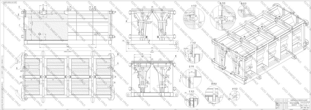 Завод УРАЛ также изготавливает ЖБИ формы по индивидуальным параметрам заказчика. Стандартное оборудование не всегда подходит для поставленных целей. Наши профессионалы помогут составить чертежи под конкретные задачи и изготовят оборудование в короткие сроки.